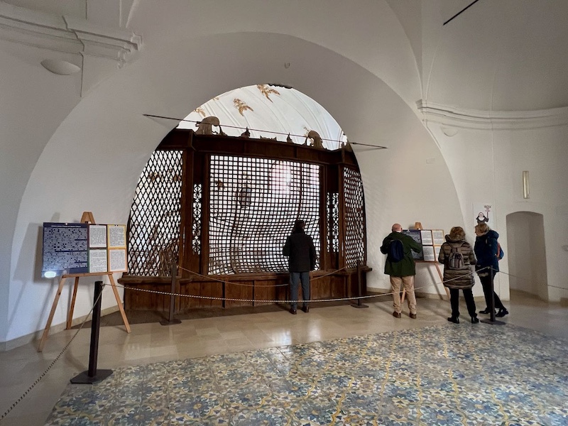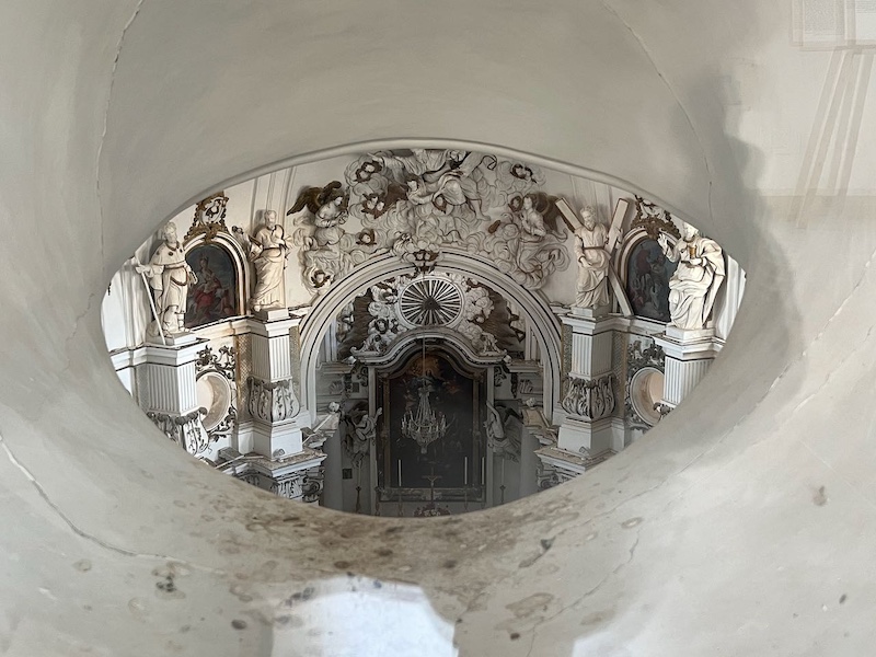 祭壇横の通路からアクセスでき、途中2階部分の回廊には覗き窓がたくさん配置されており、それぞれの角度から教会内部を見ることができます。