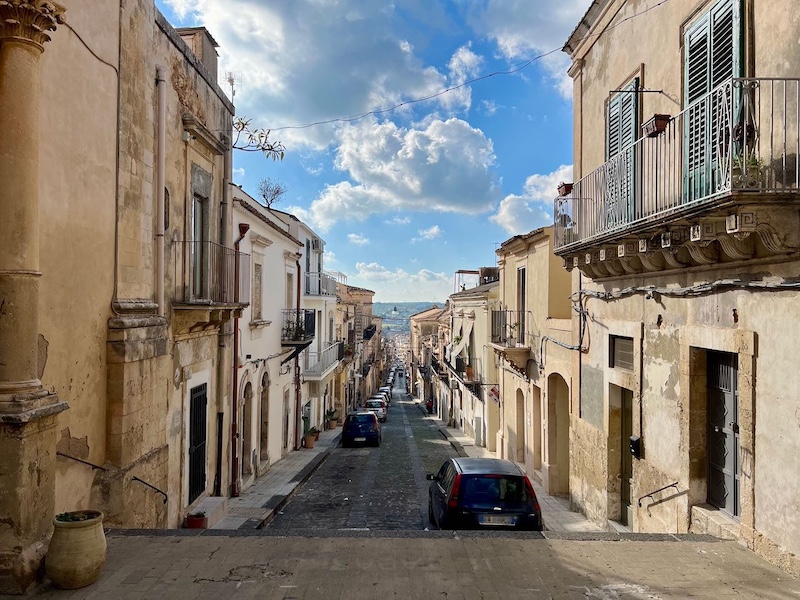 ノートの西側。この辺りまで来ると観光客はおらず、ローカルな雰囲気。カミロ・ベンソ カブール伯爵通りからヴィットリオ・エマヌエーレ通りに向かう通り。遠くまで見晴らせ、ノートが丘陵地にあることがよくわかります。