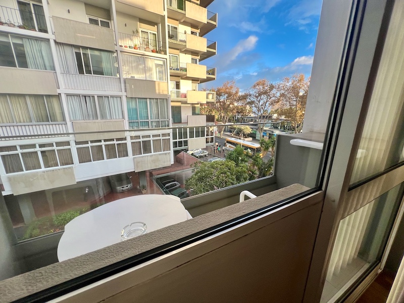 バルコニーもあります。眺望は、隣の建物ビューでイマイチですが、洗濯物を干すラックがあり、地味に助かりました。天候によると思いますが、冬は部屋の中の方が乾きやすいかも。