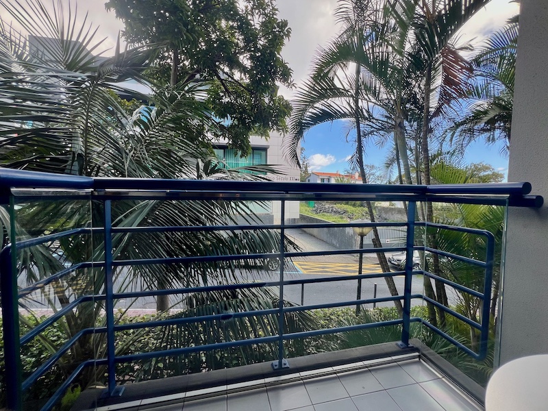 小さなバルコニー付き。今回は使いませんでしたが、テーブルと椅子もあり。