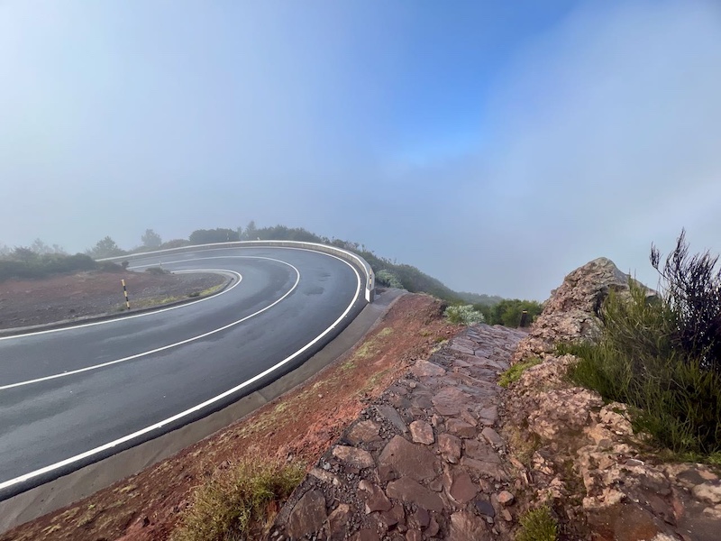 この日、フンシャルは晴れていましたが、山間部に入ると雨が降り始めました。ドライバーさん曰く「昨日よりはマシ」とのこと。一抹の不安を抱えつつ、標高1818mに位置するピコ・ド・アレエイロに到着時の天候は雨・風・濃霧・寒さの4重苦。