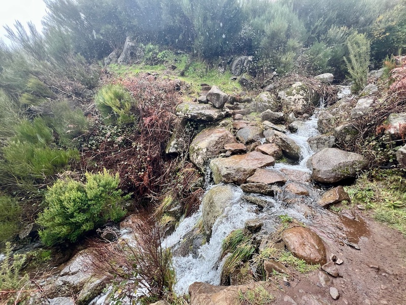 先ほどのピコ・ド・アレエイロの山頂付近の荒涼とした岩場とは対照的に、PR3は緑豊かな森や渓流が続く穏やかなルート。