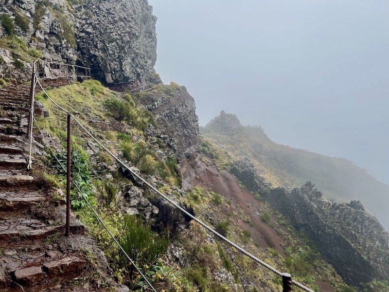 これが天国への階段なのか・・・「晴れた時にもう一度来たいな」と思いつつ、雨の中で突風が吹くと少し恐怖を感じました・・・両サイドのロープがなければもっと怖かったかも。