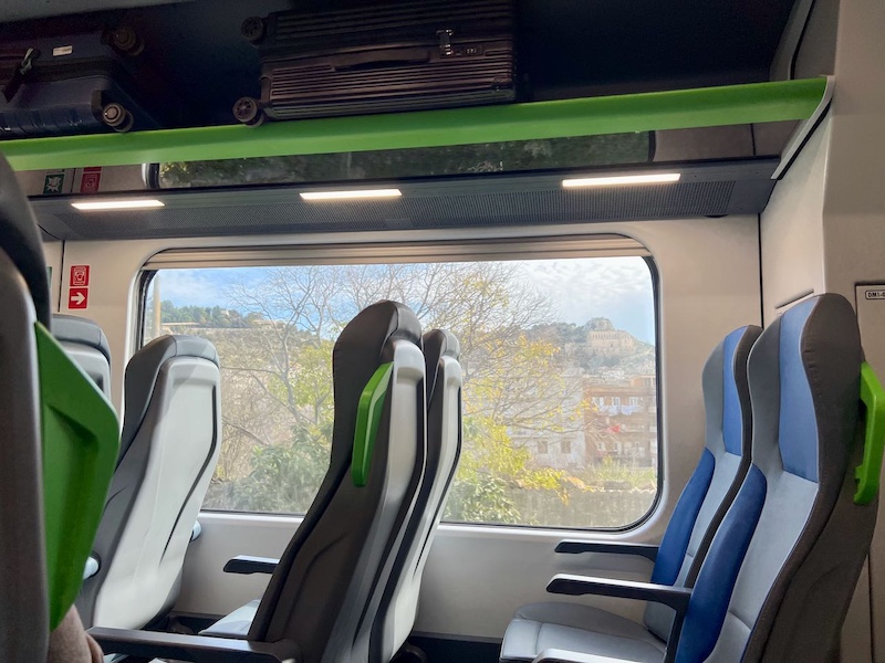 チケットは券売機で購入。シラクーサからラグーサまでは片道10.50€、約2時間の道のりです。電気系統のトラブルで10分ほど遅れて出発。電車内はモダンできれい。