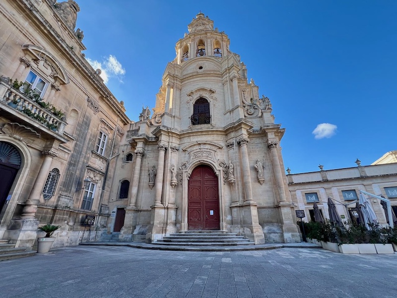 ドゥオモ広場から100メートルほど東にあるポーラ広場の角にあるサン・ジュゼッペ教会もサン・ジョルジョ大聖堂に似た美しいファサードの教会。この広場も映画のロケ地として利用されたことがあるそうです。