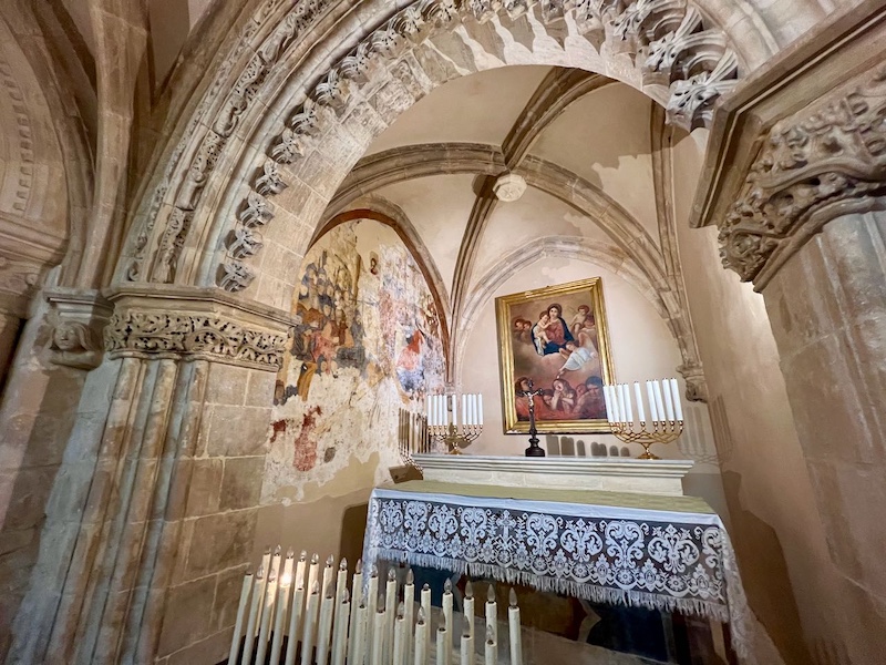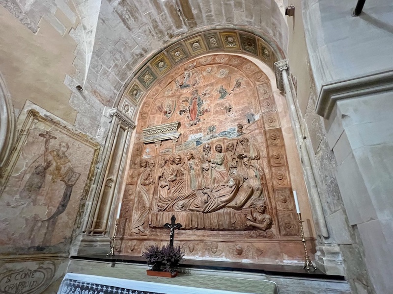 創設は13世紀まで遡るそう。テラコッタ製の祭壇は1538年に制作されたもので、下部は聖母マリアの眠りと祈りを捧げる使徒。上部は聖母被昇天の様子が描かれています。