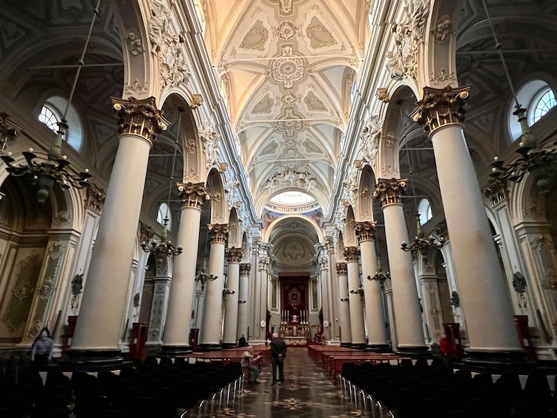 もとはゴシック様式の建築でしたが、1693年の大地震の後、バロック様式で拡張工事が行われました。
