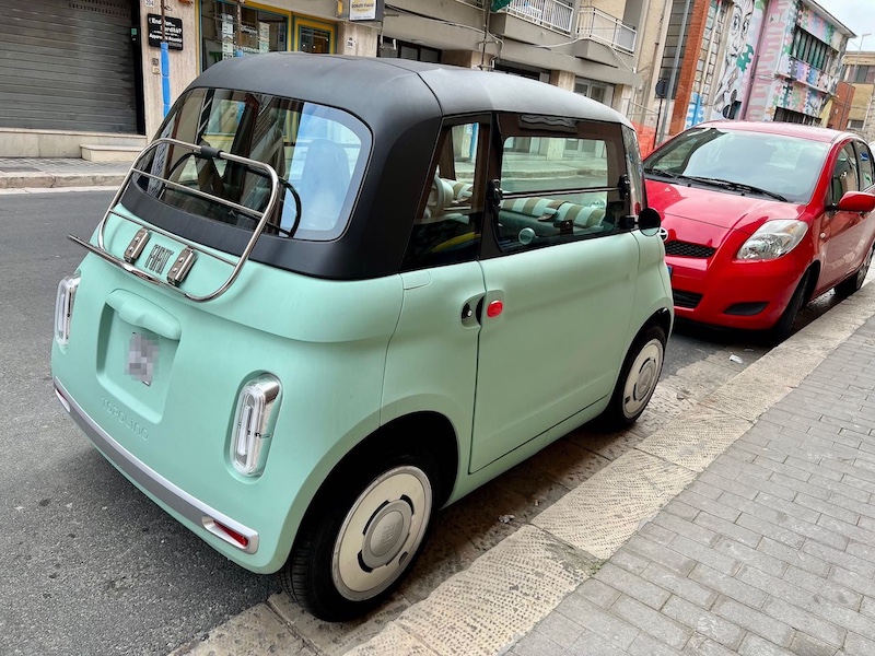 フィアットのトッポリーノ。乗り心地がよいのかはわからないけれど可愛すぎる。長距離は疲れそうだけど、街乗りカーとしては便利そうです。